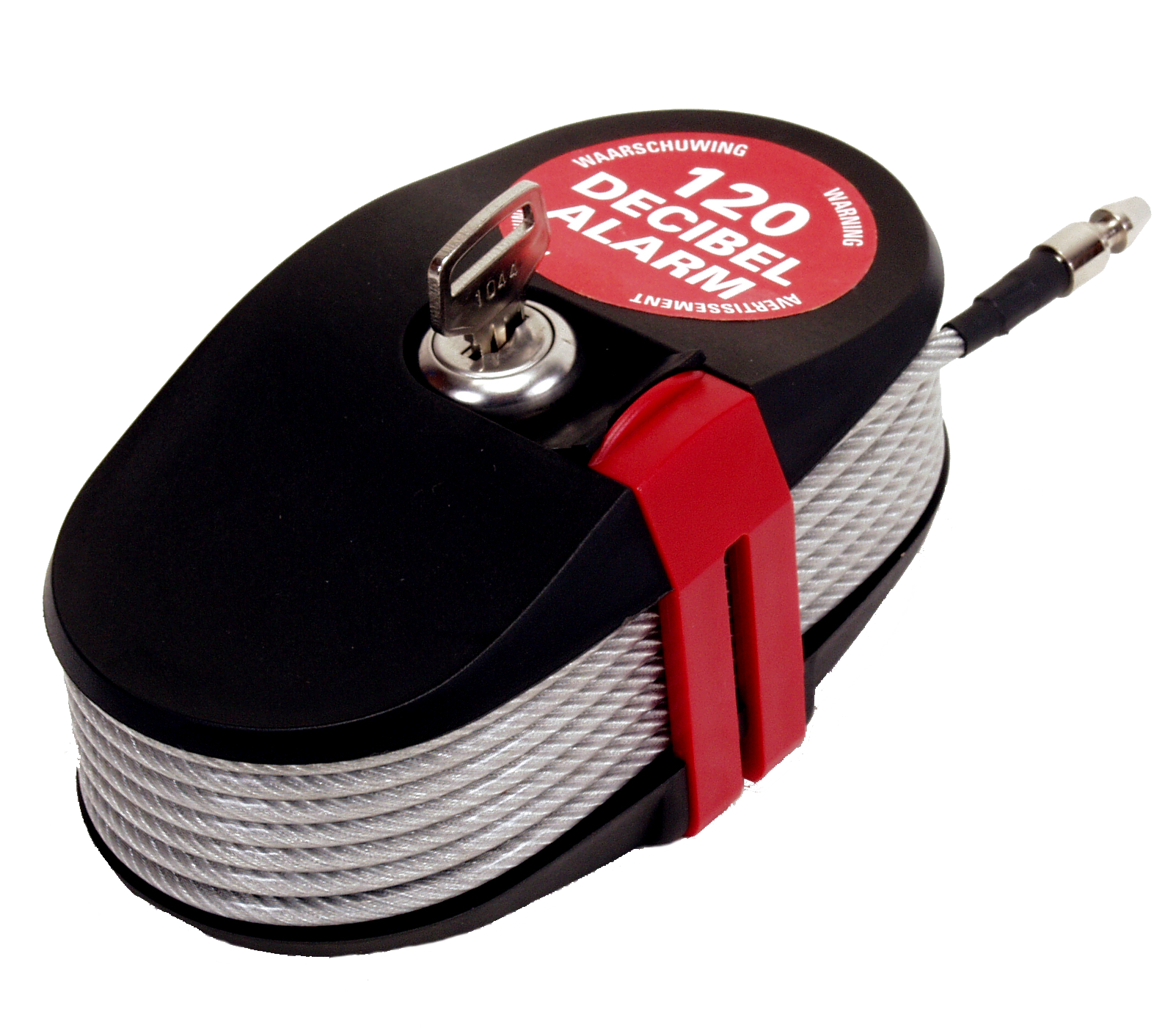 The patented cable design and “intelligent” electronics ensure the alarm will only sound when an attempt is made to (1) cut the cable, (2) force open the lock, or (3) violently attack the lock.